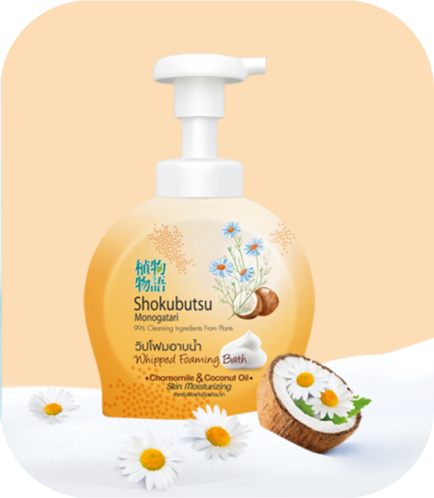 ช่วยเพิ่มและเก็บกักความชุ่มชื่น พร้อมช่วยลดการระคายเคืองจากความแห้งของผิว ด้วยคุณประโยชน์จากธรรมชาติของสารสกัดดอกคาโมมายล์และน้ำมันมะพร้าว พร้อมกลิ่นหอม ติดผิวเนิ่นนาน